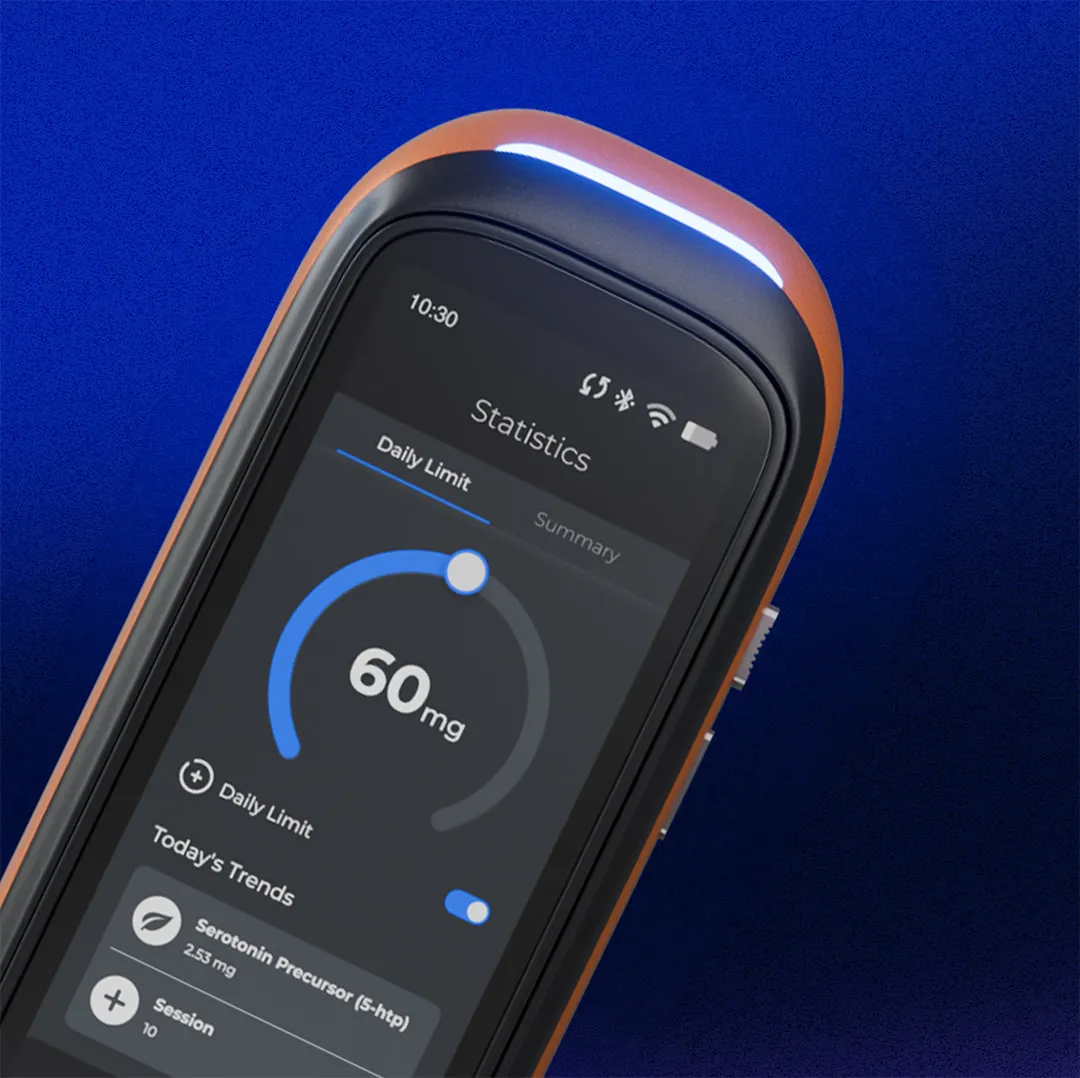 Every draw syncs to a web dashboard and mobile app — consumption data, compound breakdowns, and device settings, all in one place.